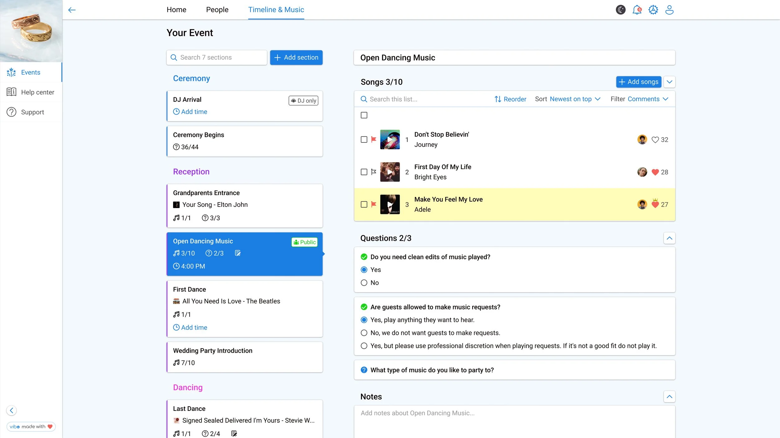 All of our clients get their very own mobile app. Add your favorite music, manage the day-of schedule, share with friends and family, and plan out all your production details within the app. Hear a song on the radio you HAVE to add to the playlist? Open the app and add it in seconds!